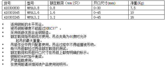 WPDQ型單板起重鉗