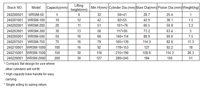 WSLC Ultra Thin Hydraulic Cylinder