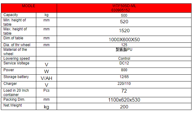 WTF50-ML Electrical Hydraulic Lift Table